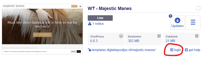 Ga terug naar de plek waar je WordPress hebt geïnstalleerd via je hosting. Daar staat namelijk een login knopje bij je WordPress installatie.