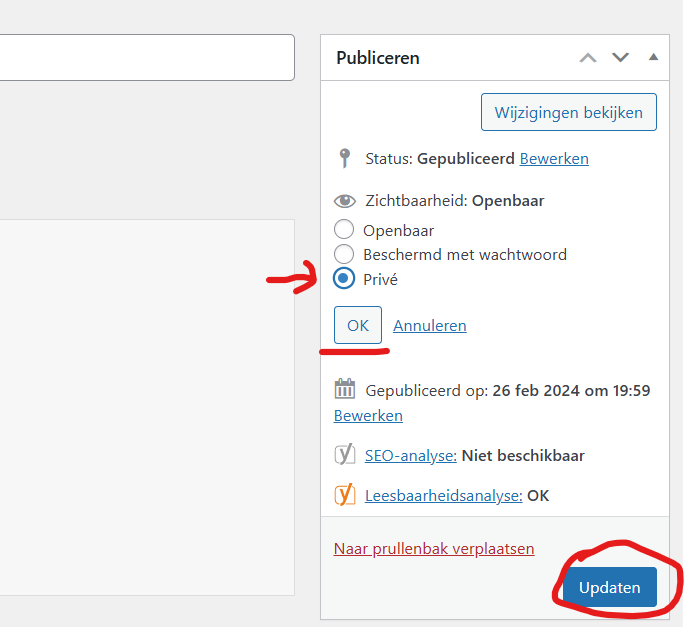 3. Rechtsboven klik je naast Zichtbaarheid: Openbaar op Bewerken.